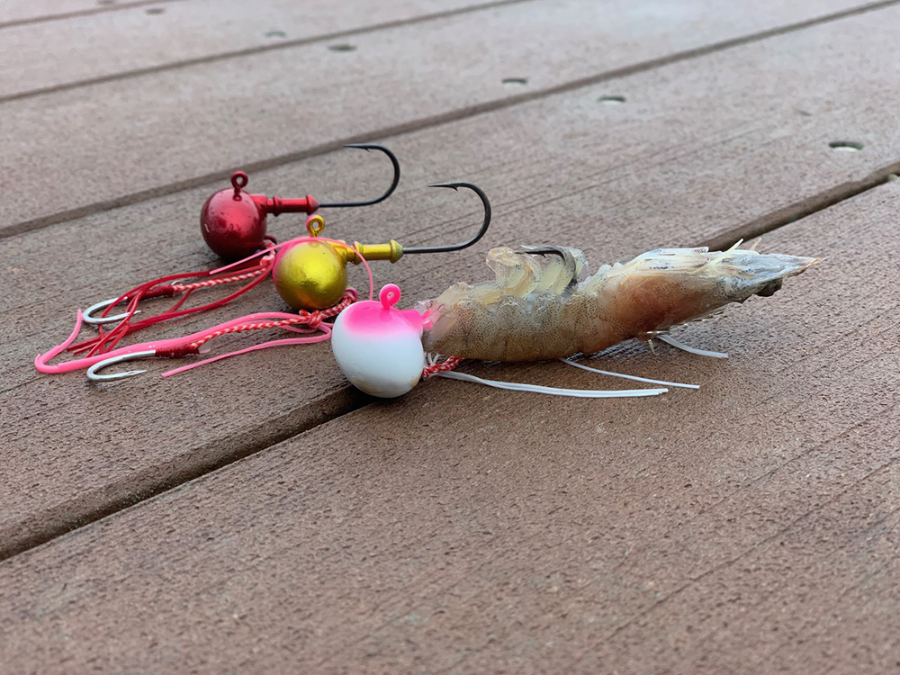 Les leurres de formes différentes, sur lesquelles on ajoute un appât naturel, comme par exemple une gambas ou du calamar, permettent d’attirer des poissons vivant au fond de l’eau ainsi que ceux évoluant dans les couches d’eau supérieures.